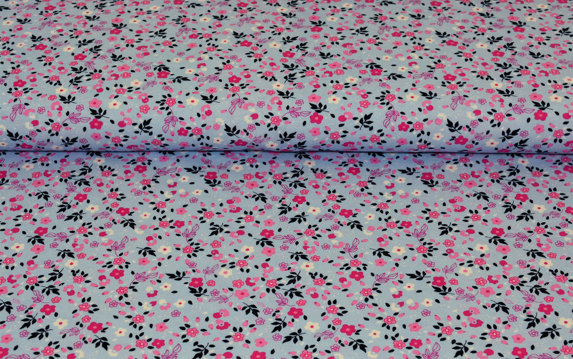 Baumwolljersey Rosita Blume groß Blau