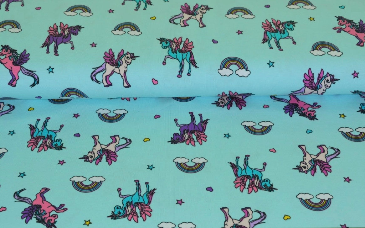 Der Baumwolljersey Bunte Einhörner mit Herzen ist nicht nur optisch ein Highlight, sondern überzeugt auch durch seine Qualität und Vielseitigkeit.
