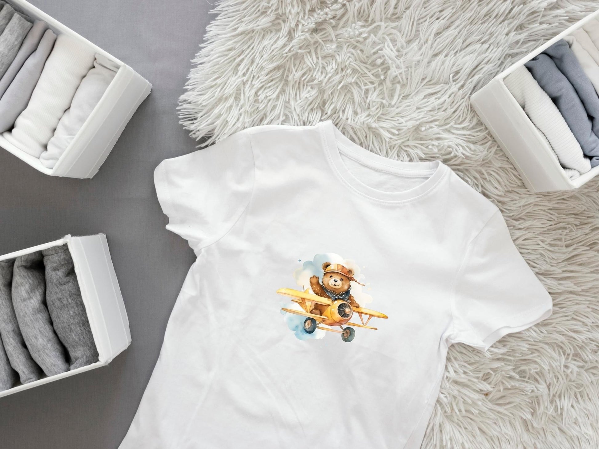 Bügelbild Teddy im Flugzeug